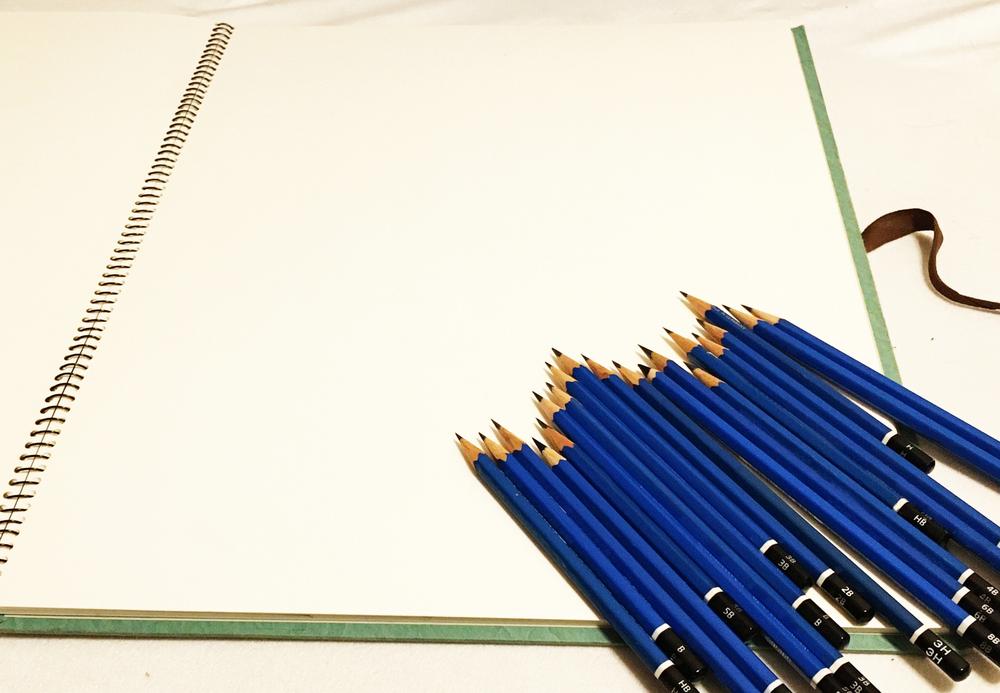 スケッチブック: 適度な厚さで、鉛筆やチャコールで描写できる紙質を選ぶ。